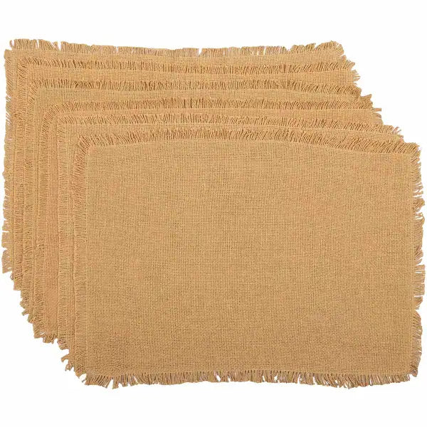 This fabulous, elegantly fringed burlap placemat set, including six mats, gives texture to your dining surface and feels softer than regular jute burlap. A medium brown, naturally earthy finish tops off this rustic, charming dining area accent.
