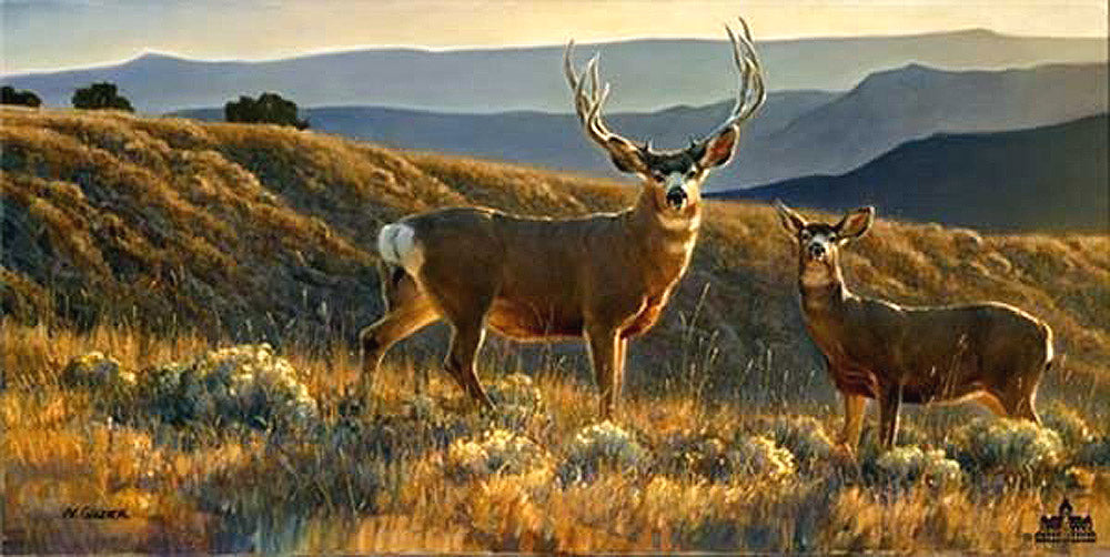 A Moment in Time by Nancy Glazier is a great picture of a proud male deer and his mate looking directly at you!? Standing in an open grassland with mountains in the background.? Just one gorgeous scene, especially if you enjoy wildlife!!? This would look great hanging on your wall at your home or office!