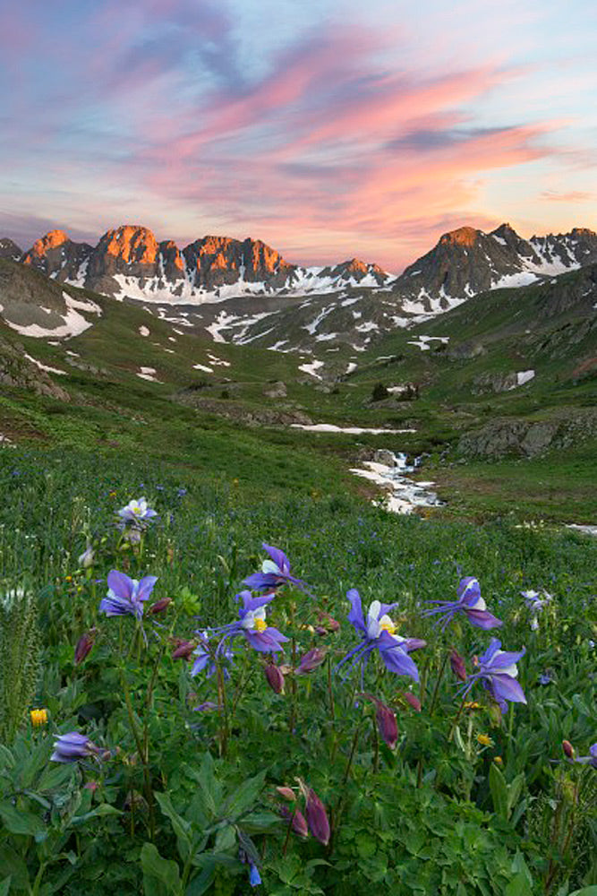 ?American Basin?is a high alpine basin surrounded by vertical cliffs. It is well known for its spectacular display of alpine wildflowers in mid-July to early August.? This scene is from the Gunnison National Forest in Colorado.??Allow 10 business days to shipment.