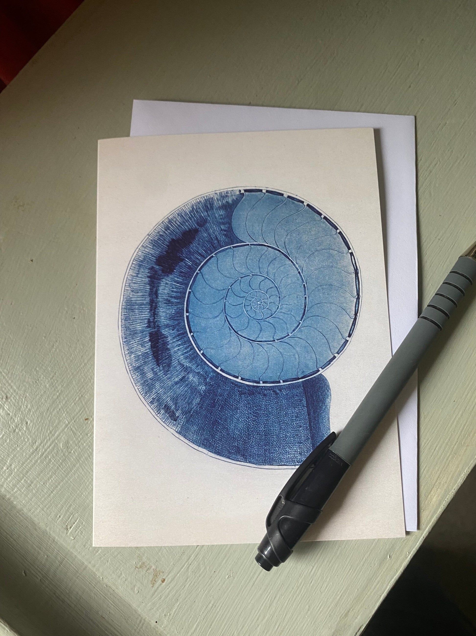 Celebrate timeless illustration with our?Ammonite Antique Greeting Card, a detailed reproduction of an original antique fossil print. Printed on premium Trutype card stock with a semi-gloss finish outside and matte writable inside, this A6 card is blank inside-perfect for birthdays, thank you notes, or just because.