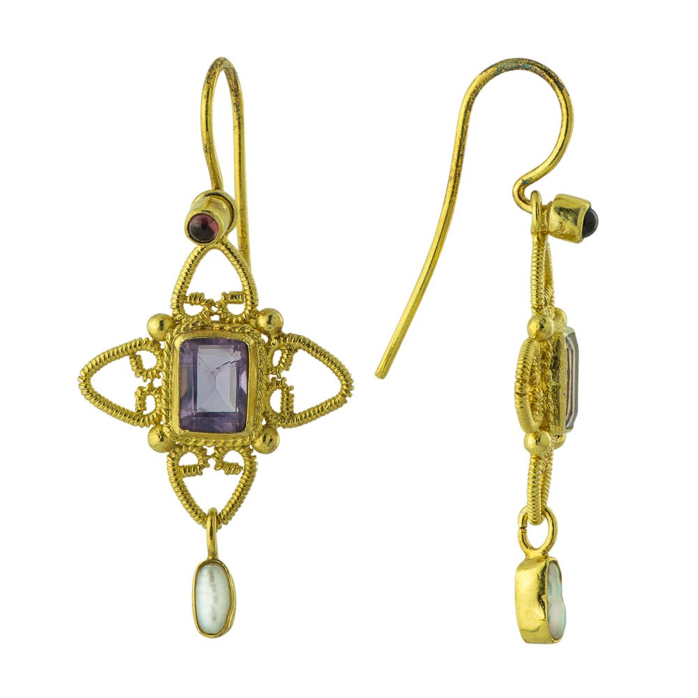 Anabelle Amethyst and Cultured Pearl Earrings
